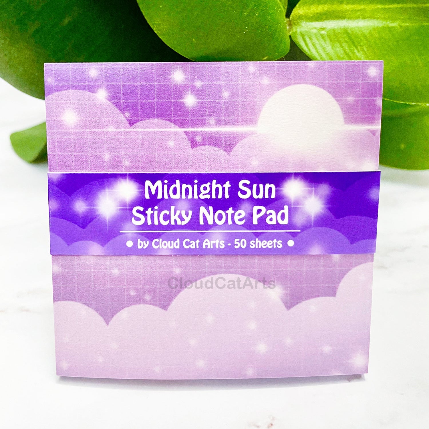 Midnight Sun - Purple Star Clouds - Sticky Notepad