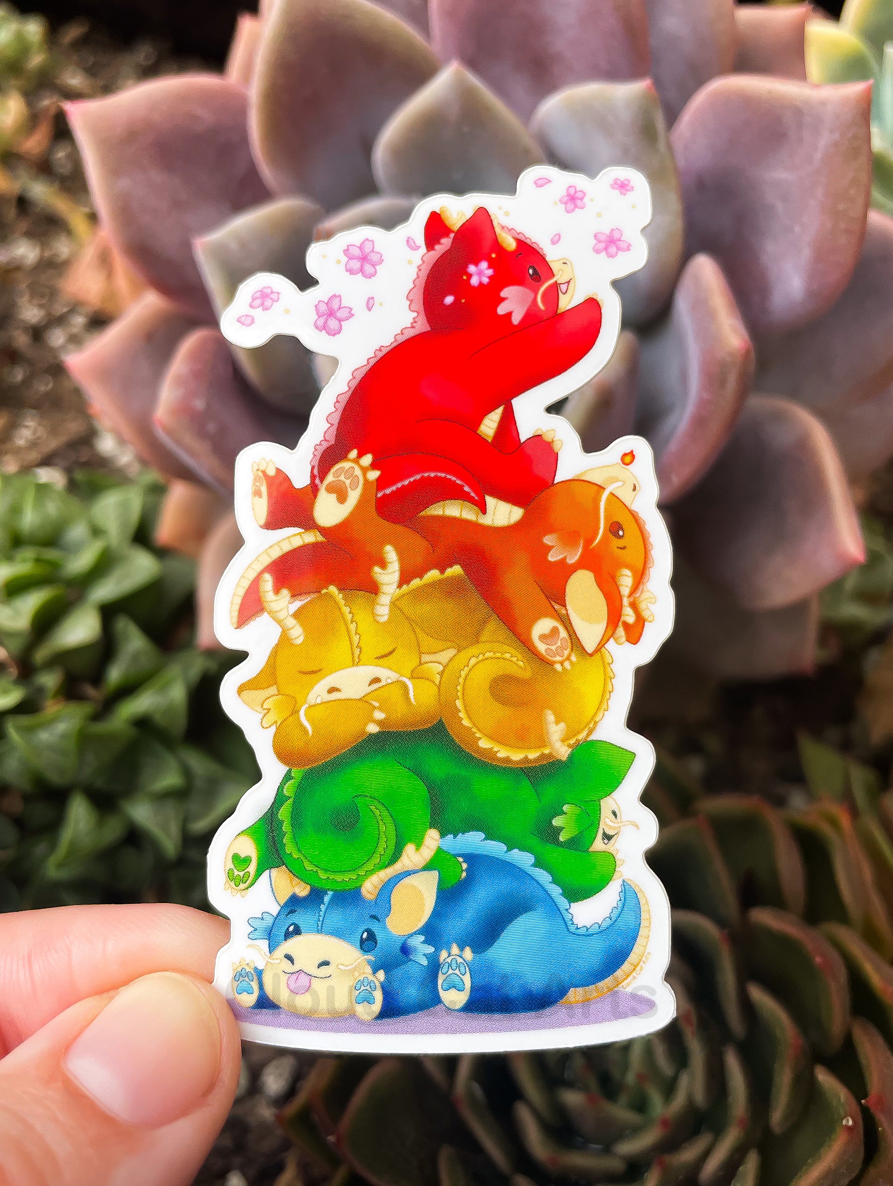 Mini Dragon Pile - Fantasy Rainbow - Vinyl Sticker