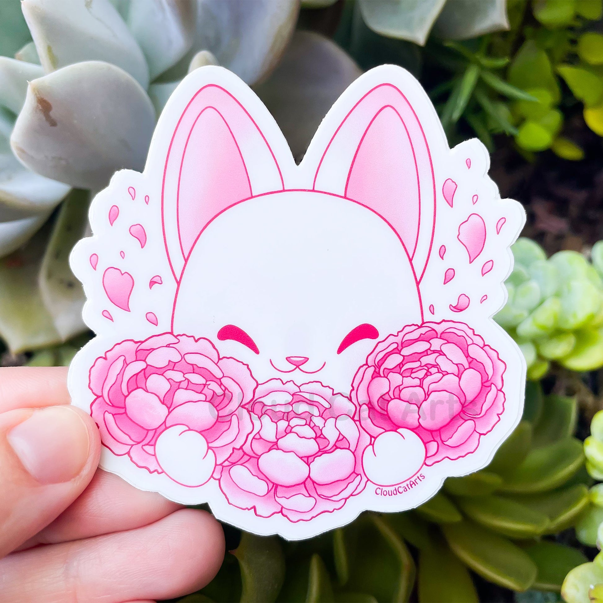Peony Kitty - Pink Flower Cat - Vinyl Sticker