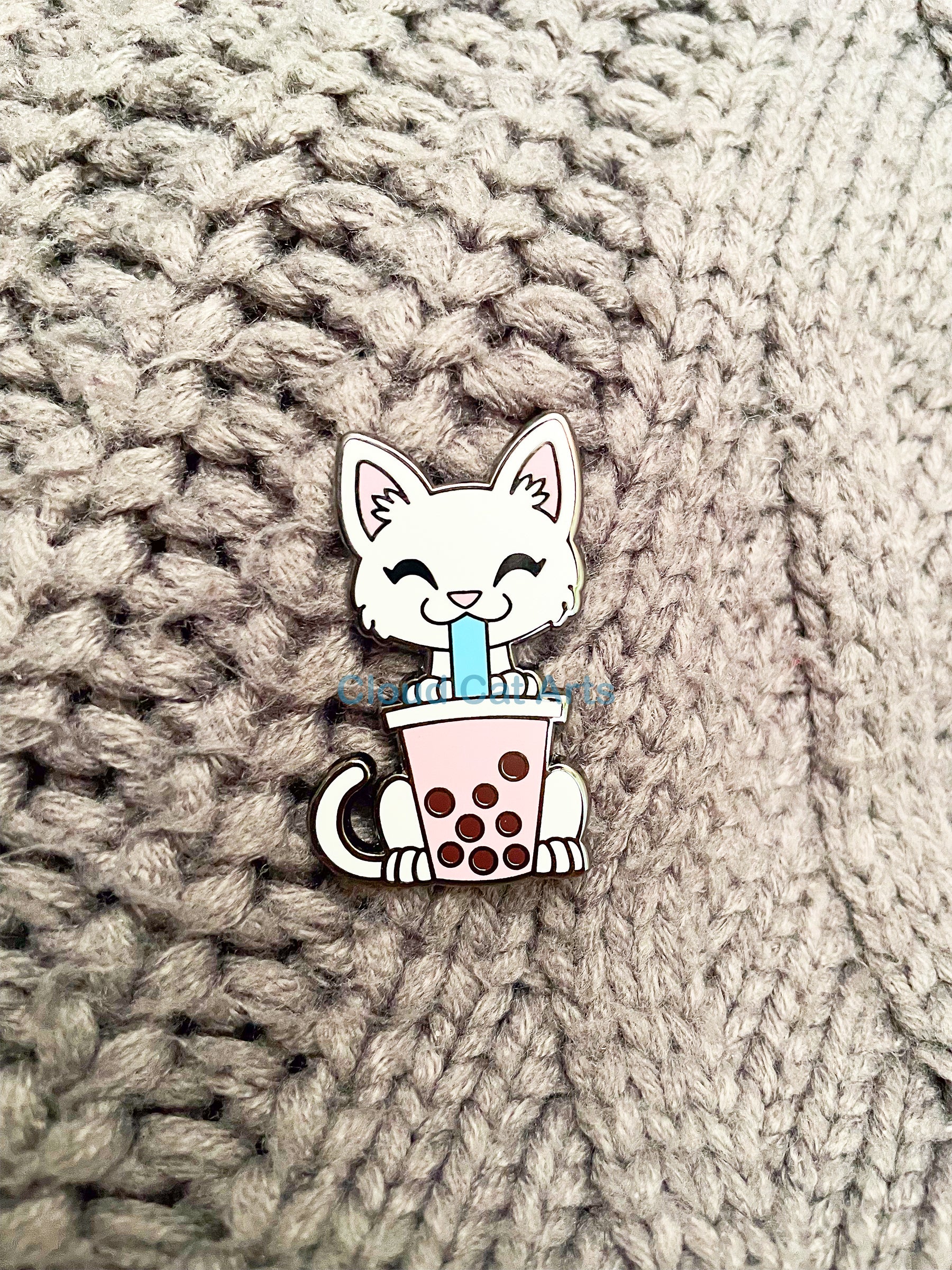 Strawberry Boba Tea Cat - Hard Enamel Pin